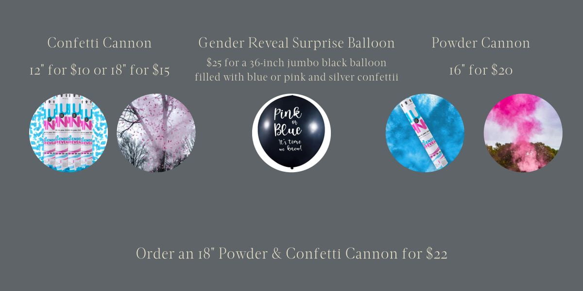 From confetti poppers to powder cannons, we have everything you need to make your announcement momentous and memorable.